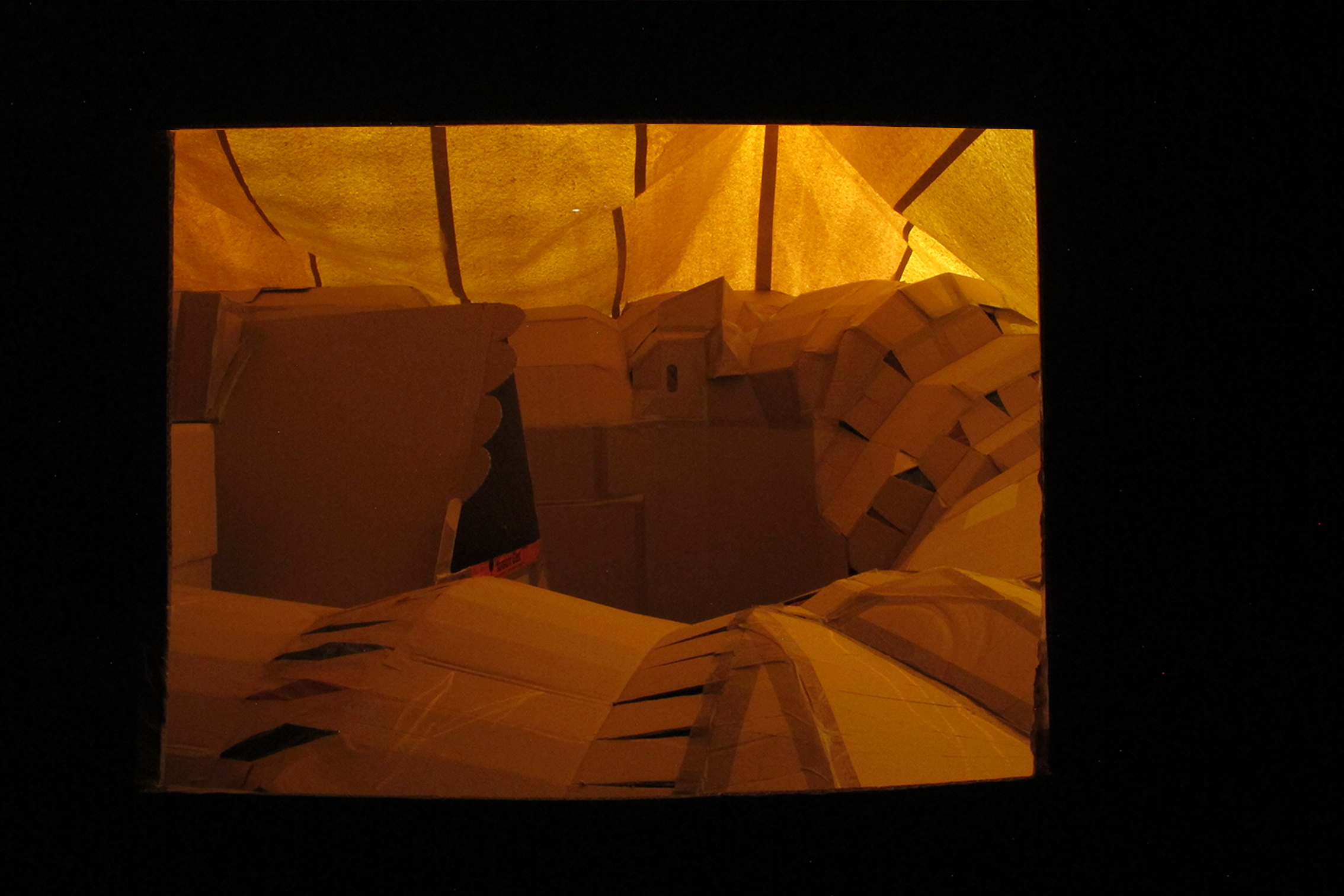Instalación realizada con materiales de descarte. Un túnel con aspecto de caracol o laberinto por el que se ingresa un poco agachado hasta tener que deslizarse horizontalmente por una pequeña apertura a un mínimo espacio central donde se puede ver un video. Este pequeño espacio dirige a dos nuevos lugares: por un lado, una pequeña habitación donde el espectador puede entrar agachado y ver desde una abertura con forma de ventana un paisaje extraño, al que a su vez puede accederse si se ingresa por la otra abertura. Esto da por resultado una exposición doble donde el público es parte de la instalación.